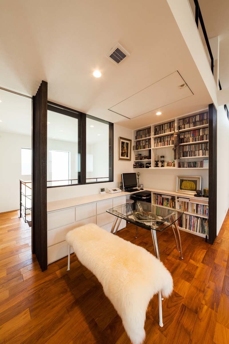 また、造作でオーダーメイドに制作した家具や本棚も、お施主様夫婦のこだわりが感じられます。