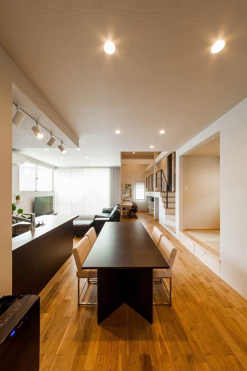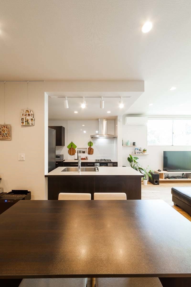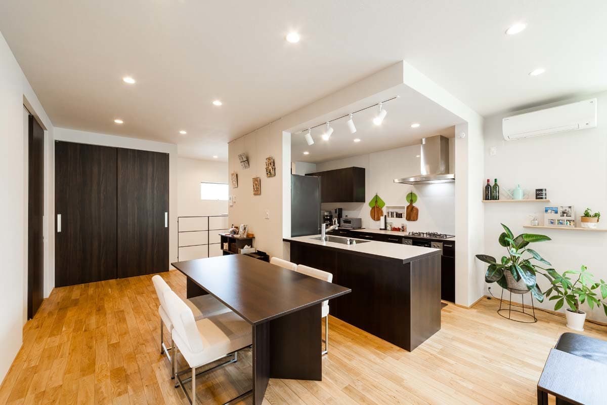 オープンキッチンとデスクコーナーも備わったLDKは、家族がみんなで一緒の空間で楽しめる心地よい空間です。