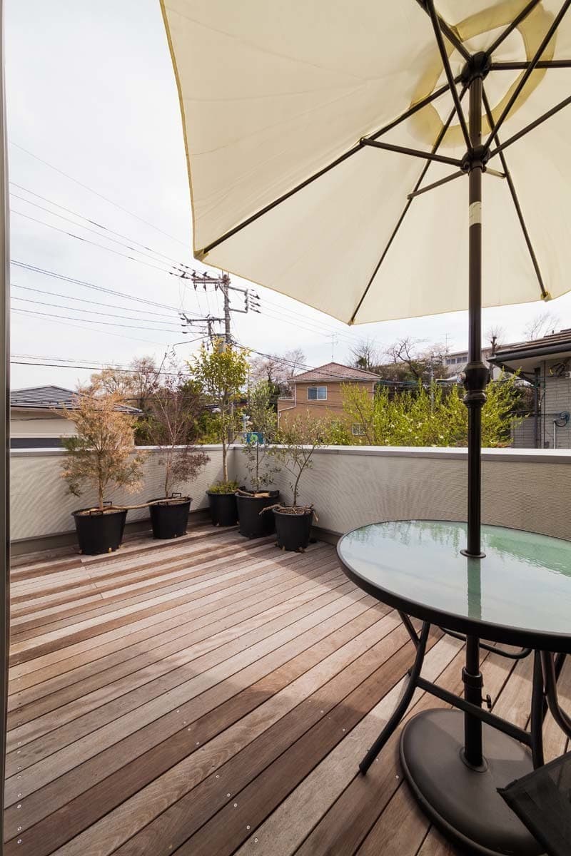 リビングにつながるルーフバルコニーは天気の良い日はお茶を飲んだりバーベキューをしたりと楽しさが溢れる場所でもあります。