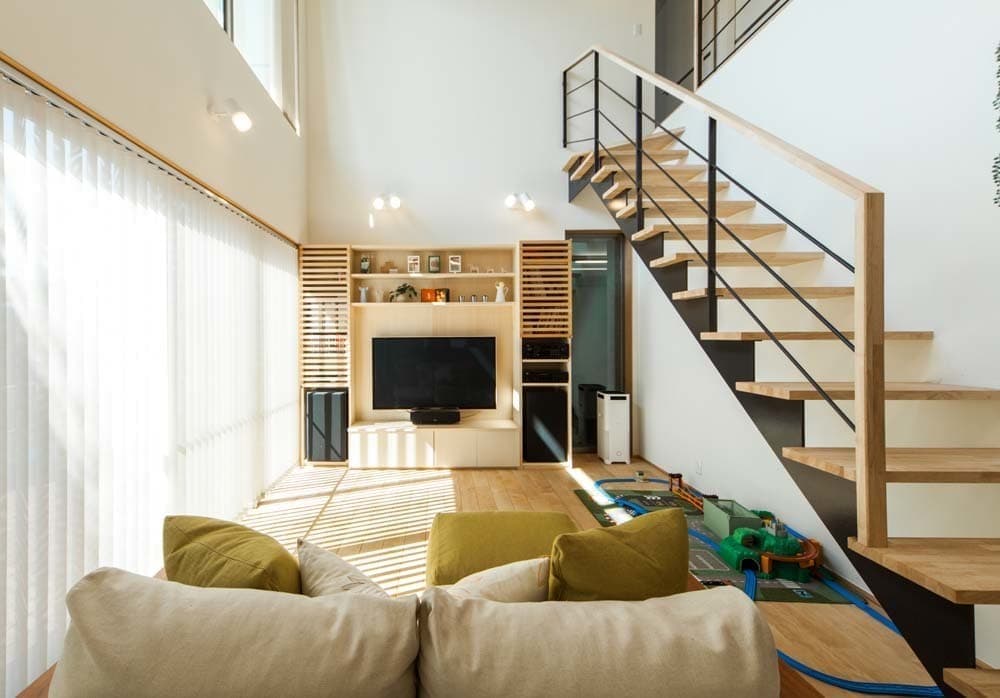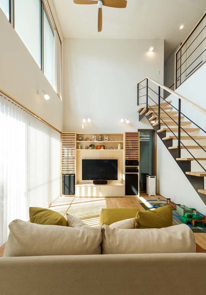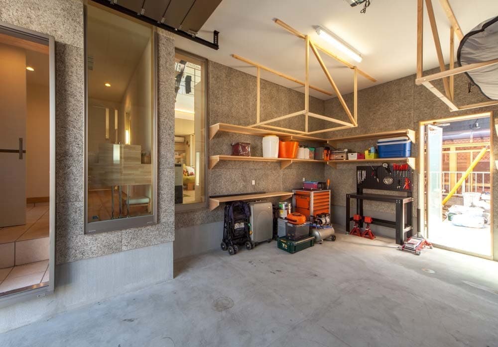 大きな吹き抜けのあるガレージハウス