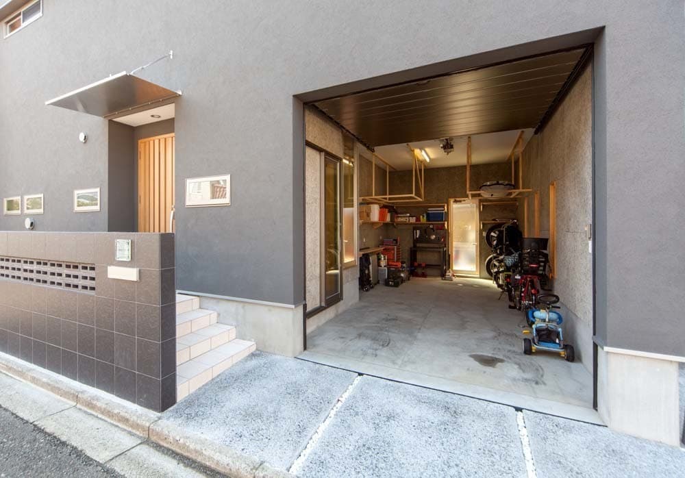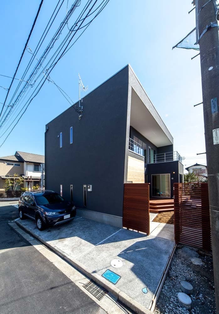 シャープさを際立たせたフォルムの中に木質感を取り入れ、スタイリッシュに茅ヶ崎の地にも似合うガレージハウスになりました。