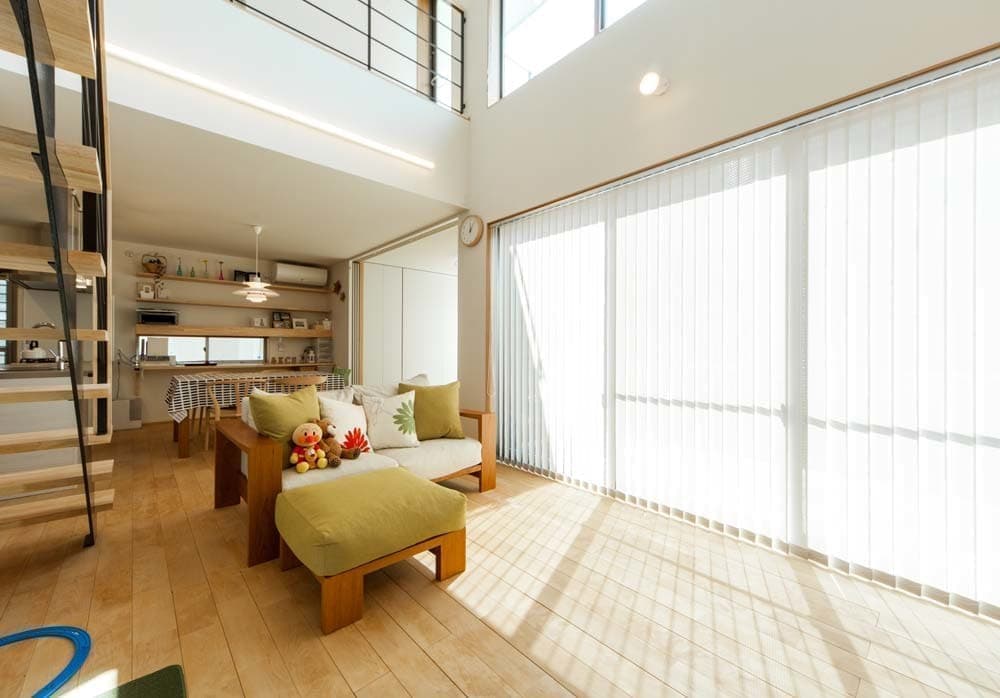 サーファーで車好きのご主人のこだわりのビルトインガレージや大きな吹抜けのあるリビングが大きな特徴です。大空間や大開口部はSE構法の構造の強さを最大に活かした空間となり、採光や風通しも考慮したパッシブデザインは心地よい暮らしを実現するための提案でもあります。