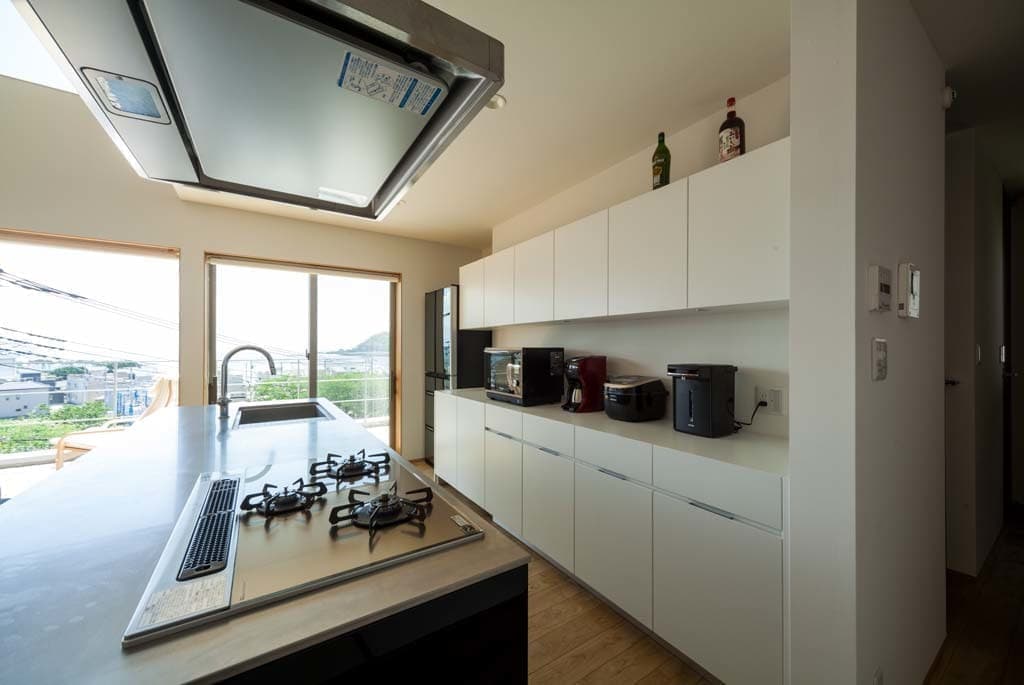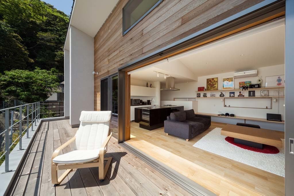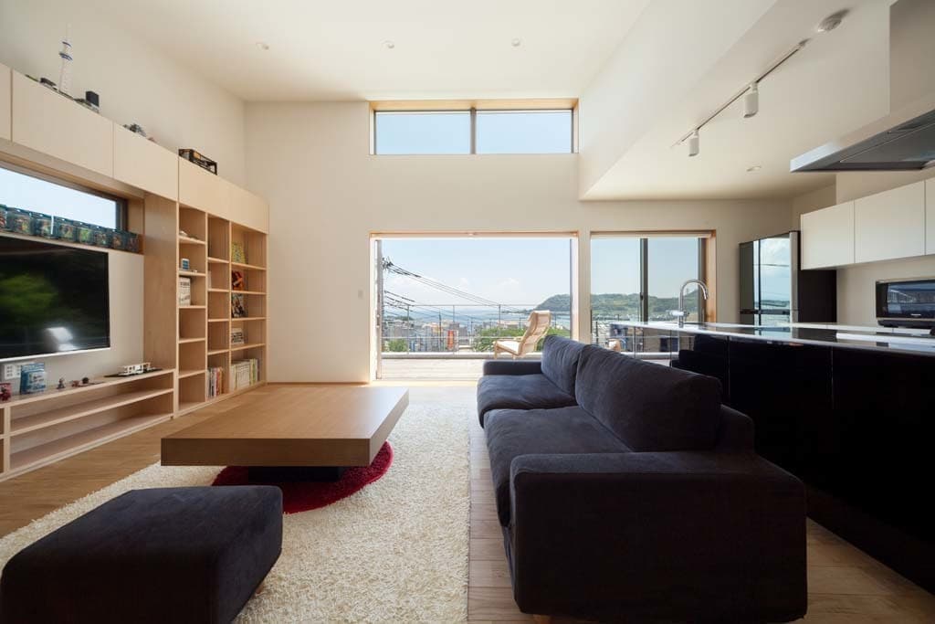東京湾を一望できる横須賀の高台に建築された住宅です。2Fにリビングを配置して、SE構法らしさを充分に発揮した開放的な空間が特徴です。