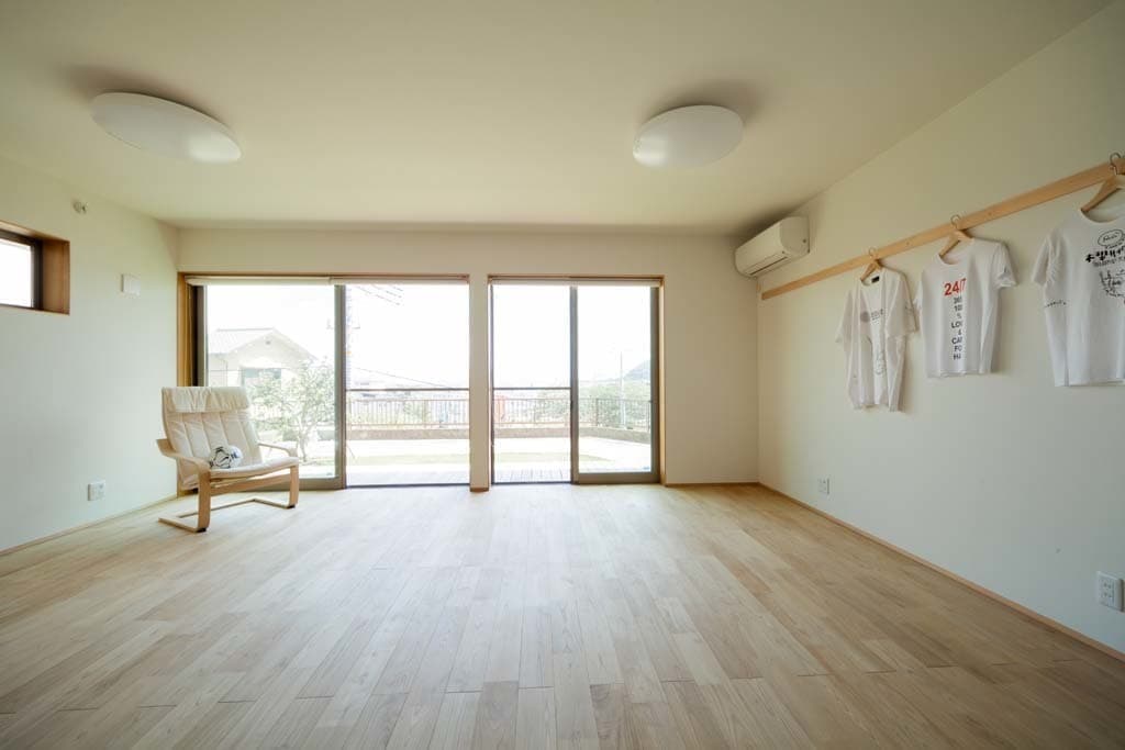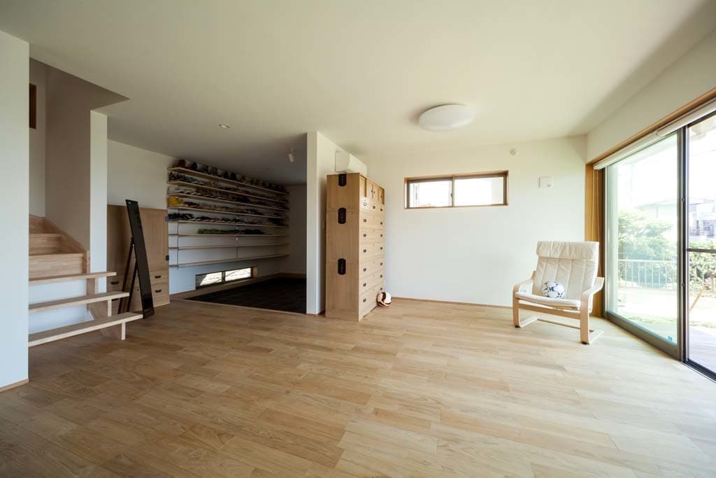 大きな空間と開放的な開口のデザインが外と中を楽しくつなげる家になりました。