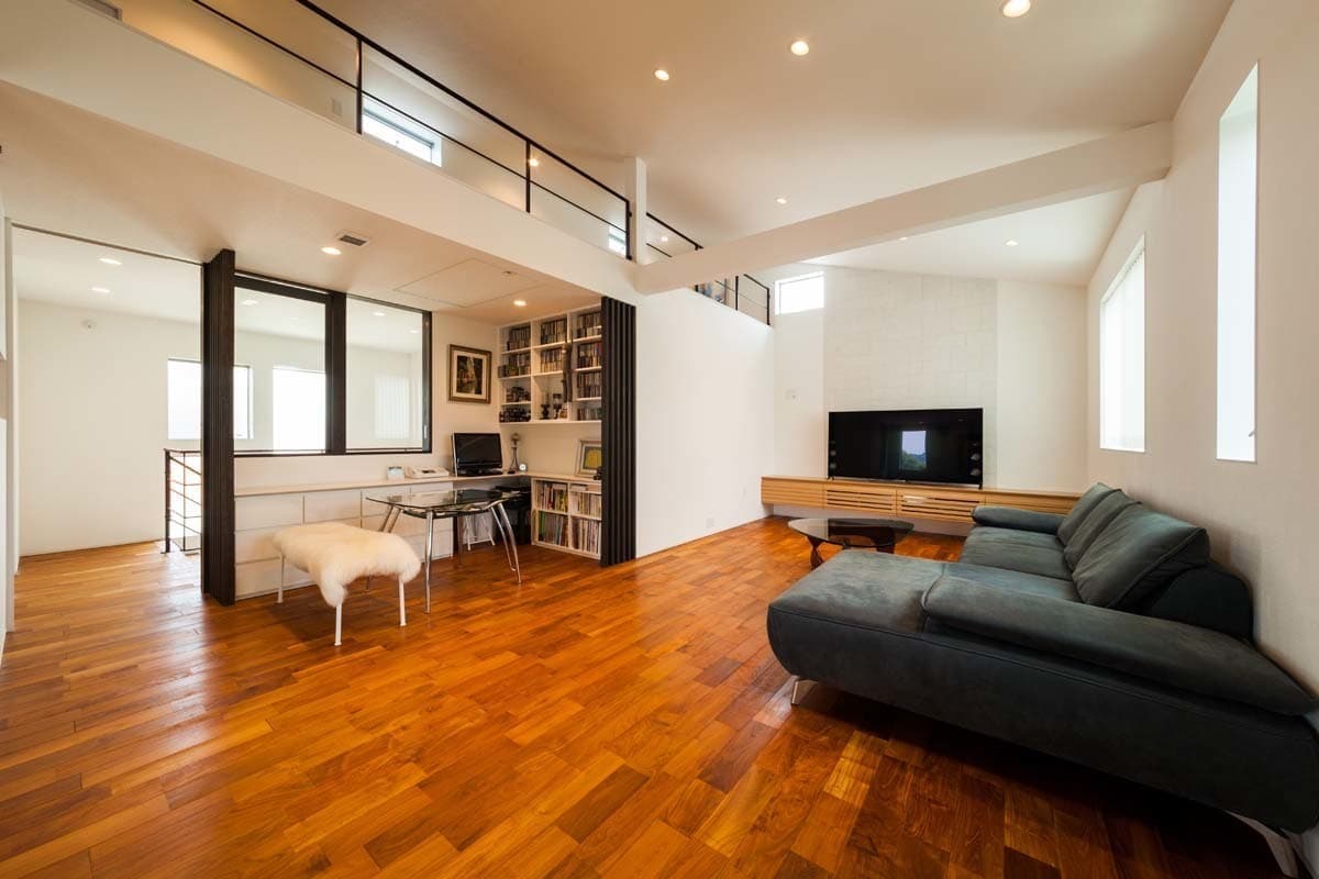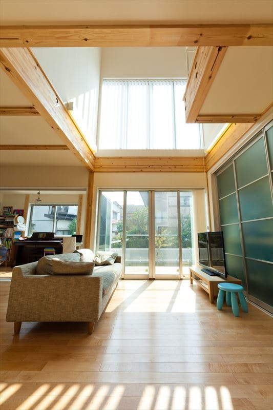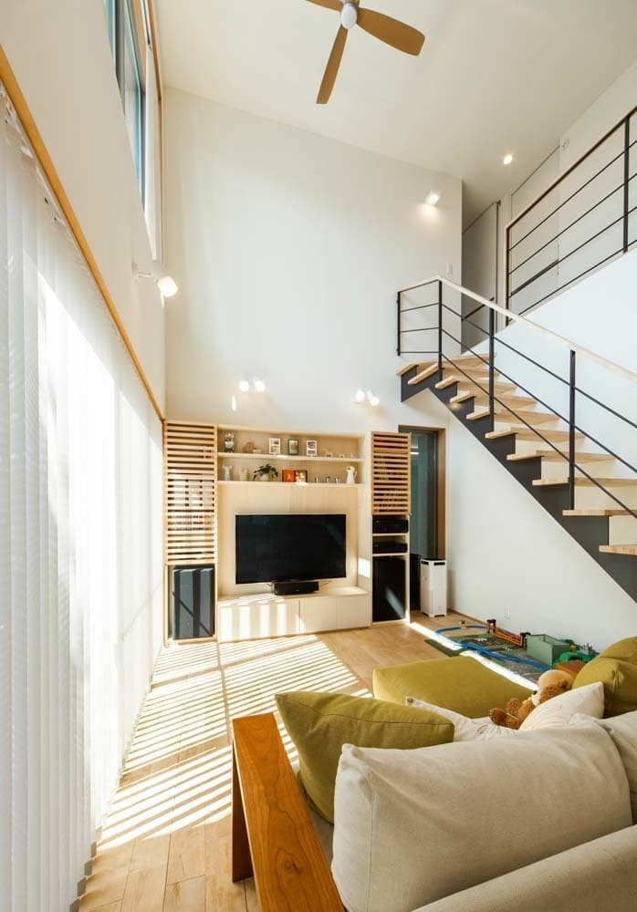 「吹き抜け」は1階と2階の空気を繋げているだけではなく、家族の声や息遣いも繋げています。例えば、リビングにいながら2階のホールに声が届くことで、いつでも親と子の安心感を感じることができたり、なによりも天上の高さは本当に気持ち良いものです。